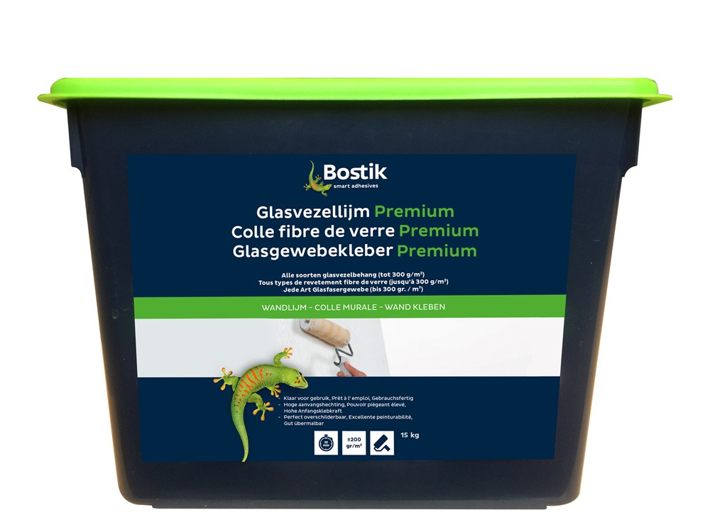 [Glasvezellijm Premium is een gebruiksklare dispersielijm op PVAC-basis voor het verlijmen van glasvezelbehang, voor normaal poreuze wanden en plafonds. Geschikt voor het verlijmen van: te schilderen glasvezelbehang met of zonder papieren rugzijde, te schilderen textuur, vinylbehang met papieren rugzijde.