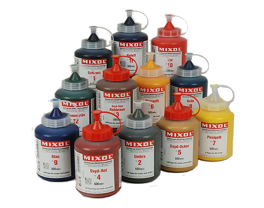 - Très performant : colore jusqu'à 10 % sans altérer la qualité de la peinture. Mixol est depuis des années à la pointe des concentrés universels et convient, de ce fait, à presque toutes les peintures. Mixol offre une concentration de couleurs de 33 tons pour réaliser plus de 1000 nuances le plus facilement du monde. Mixol ne forme pas de peau, ne déssèche pas, résiste au froid comme à la chaleur, est facile à doser, donc très économique.
